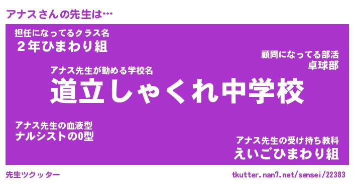 | ヒーロー風カッコイイあだ名 | 『スーパーアナス』『ウルトラアナスマン』 |