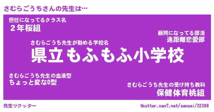 | ポケモン風あだ名 | 『サムチュウ』『サムラダネ』 |