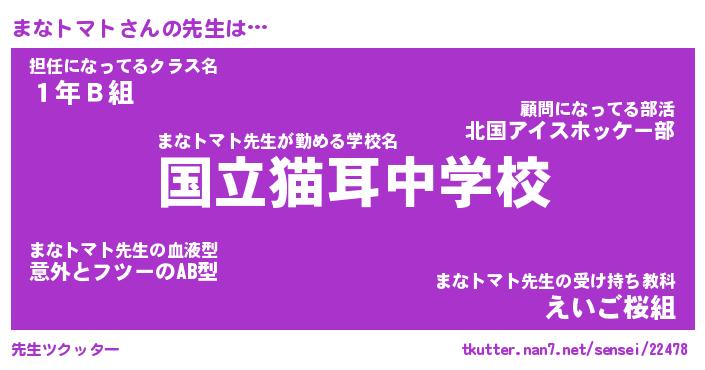 | ファンタジー風あだ名 | 『マナフェル』『エターナルマナトマトー』 |
