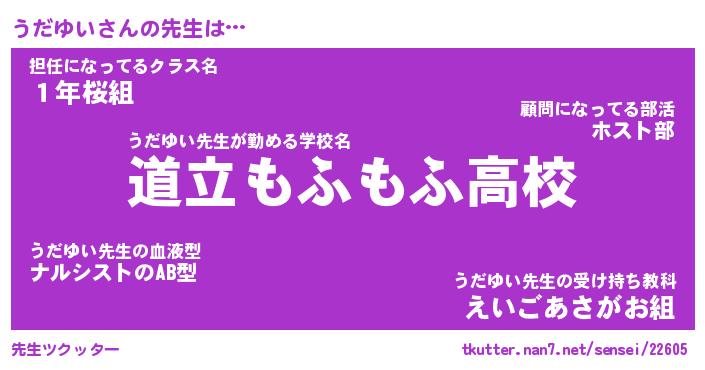 | 意味不明あだ名 | 『ペロリンうだゆい』『永久保存うだゆい』 |