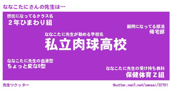 | 意味不明あだ名 | 『ペロリンななこたに』 |