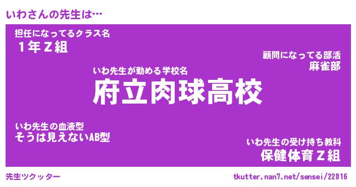 | ヒーロー風カッコイイあだ名 | 『スーパーイワ』『ウルトラいわマン』 |