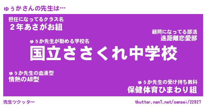 | 伝説のあだ名 | 『伝説のスナイパーゅぅか』 |