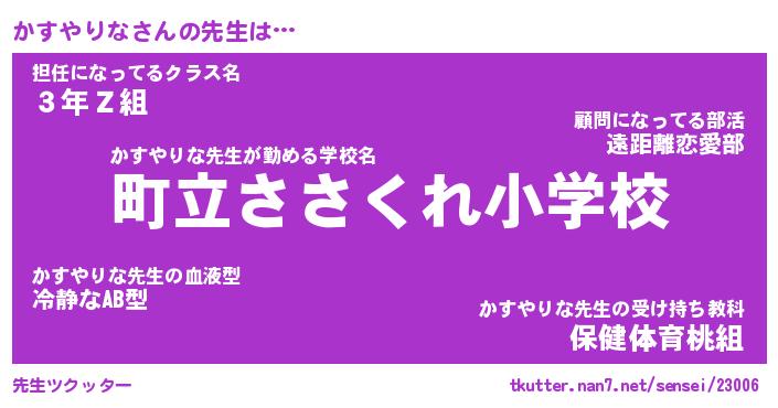 | 肩書あだ名 | 『かすやりな社長令嬢』『かすやりな校長』 |