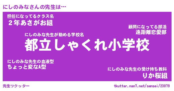 | ポケモン風あだ名 | 『ニシチュウ』『ニシノダネ』 |