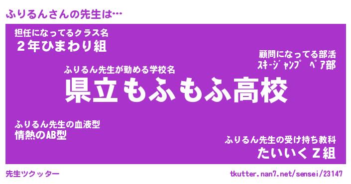 | 意味不明あだ名 | 『ペロリンふりるん』『永久保存ふりるん』 |