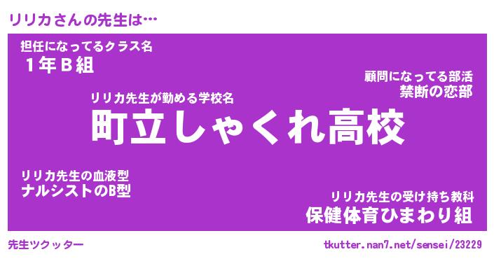 | ヘコむあだ名 | 『リリっふぃ~』『つくし』 |
