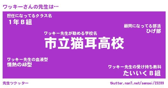| 意味不明あだ名 | 『ペロリンワッキー』『永久保存ワッキー』 |