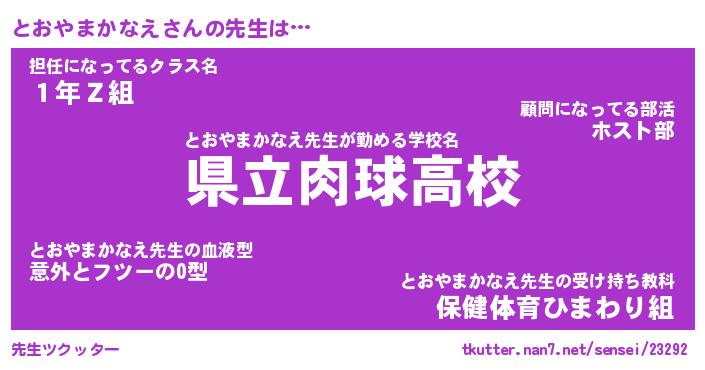 | ポケモン風あだ名 | 『トオチュウ』『トオヤダネ』 |