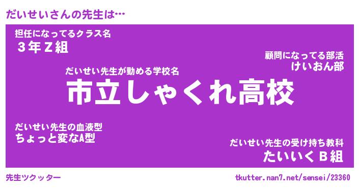 | 胡散臭い通販商品みたいなあだ名 | 『必ず成功する霊験あらたかなお札…その名も「だいせい」』 |
