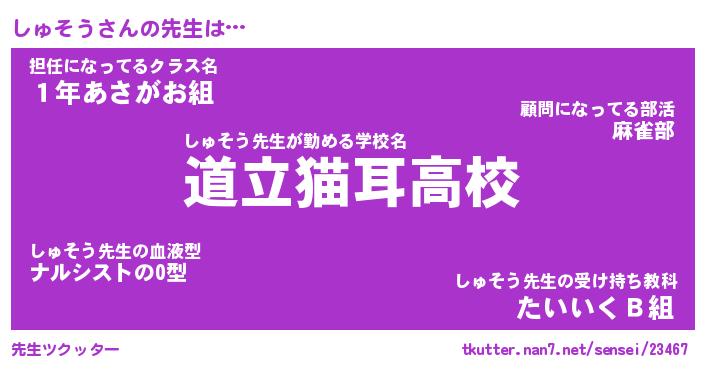 | ヘコむあだ名 | 『しゅにー』『つくし』『しゅお』 |