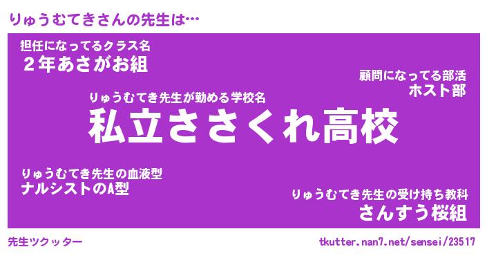 | 男性向けラノベタイトル風あだ名 | 『りゅうむてきの憂鬱』 |