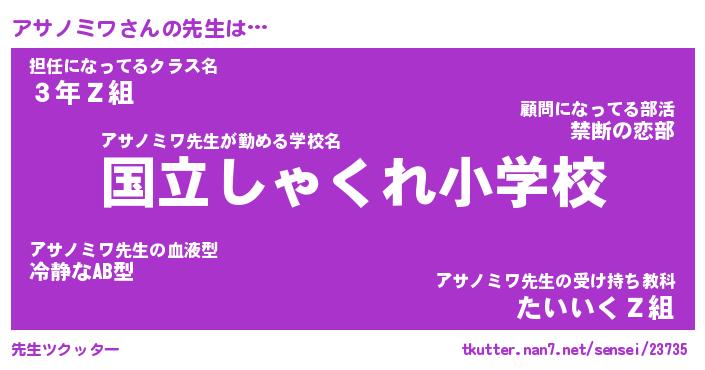 | ファンタジー風あだ名 | 『アサフェル』『エターナルアサノミワー』 |