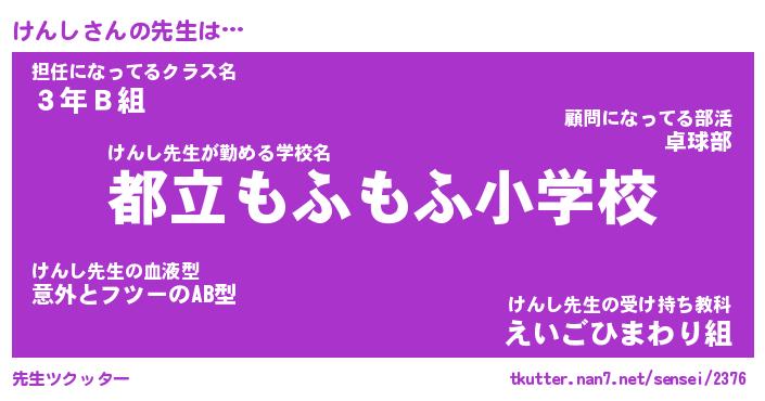 | ヘコむあだ名 | 『けんにゅー』『つくし』『けんっ子』 |
