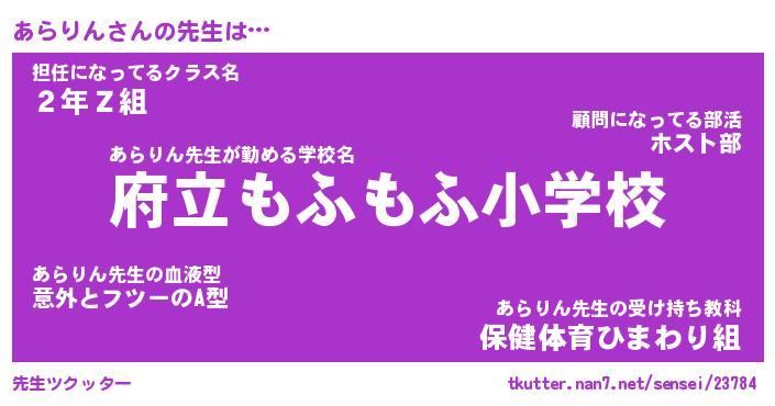 | 意味不明あだ名 | 『ペロリンあらりん』『永久保存あらりん』 |