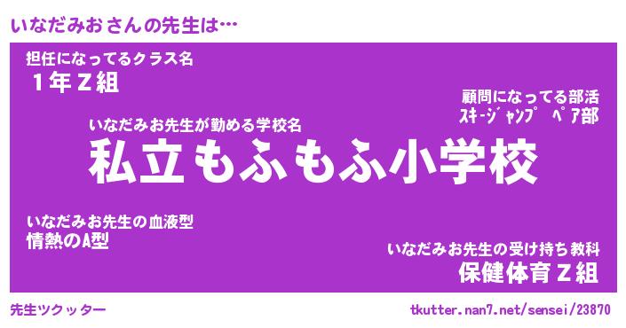| ヘコむあだ名 | 『いなにゅー』『つくし』『いなを』 |
