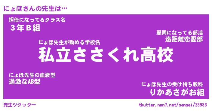 | 伝説のあだ名 | 『伝説のスナイパーにょほ』 |