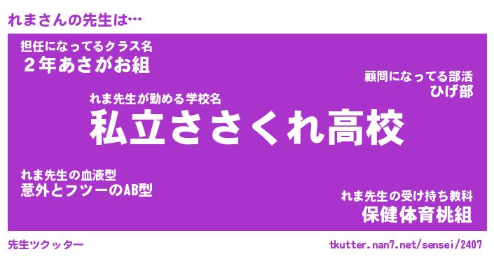 | 伝説のあだ名 | 『伝説のスナイパーれま』 |