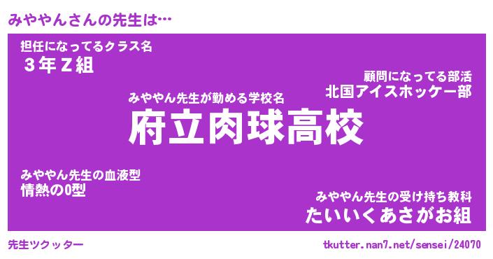 | ヘコむあだ名 | 『みやふぇ~』『酢こんぶ』 |
