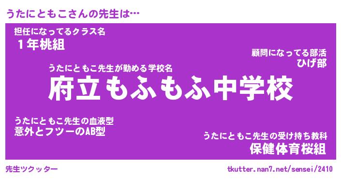 | ヘコむあだ名 | 『うたにゅー』『つくし』『うたっぺ』 |
