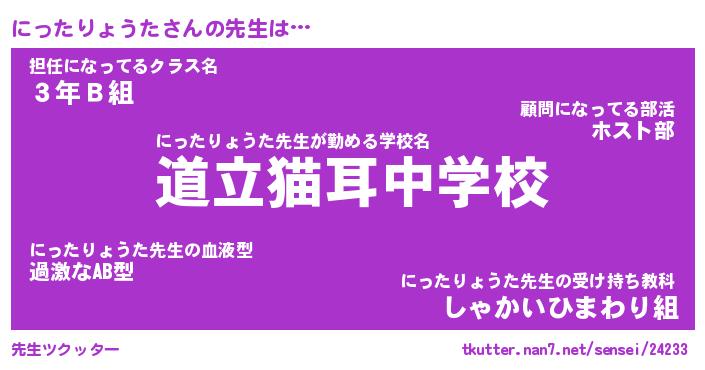 | ポケモン風あだ名 | 『ニッチュウ』『ニッタダネ』 |