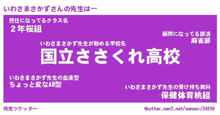 | 男性向けラノベタイトル風あだ名 | 『いわさまさかずの憂鬱』 |