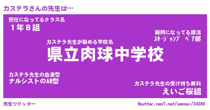 | 意味不明あだ名 | 『ペロリンカステラ』『永久保存カステラ』 |