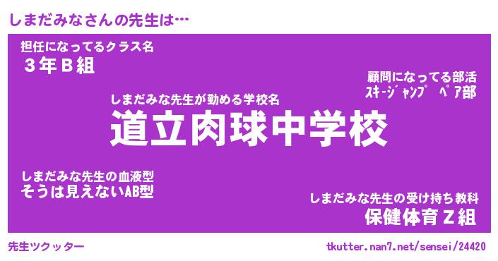 | ファンタジー風あだ名 | 『シマフェル』『エターナルシマダミナー』 |