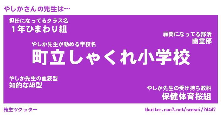 | 意味不明あだ名 | 『ペロリンやしか』『やしかフォーエバー』 |