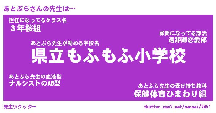| 意味不明あだ名 | 『ペロリンあとぶら』『永久保存あとぶら』 |