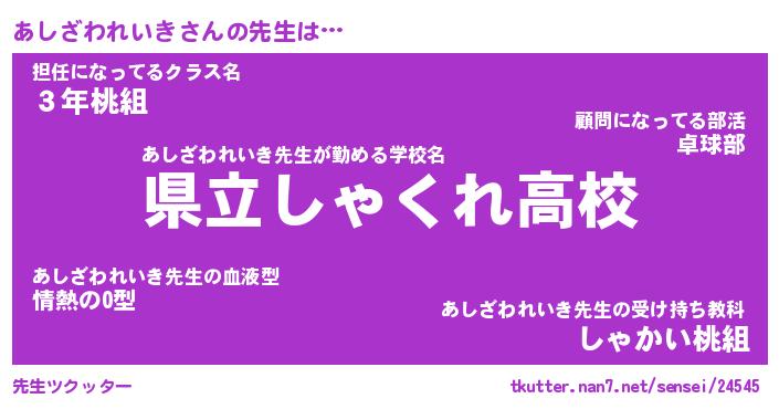 | 胡散臭い通販商品みたいなあだ名 | 『モテモテ間違いなし霊験あらたかなお札…その名も「あしざわれいき」』 |