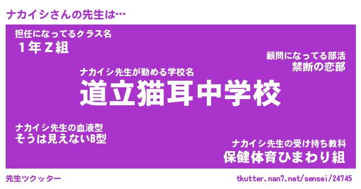 | 意味不明あだ名 | 『ペロリンナカイシ』『永久保存ナカイシ』 |