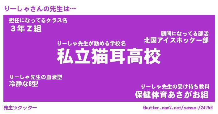 | 意味不明あだ名 | 『ペロリンりーしゃ』『永久保存りーしゃ』 |