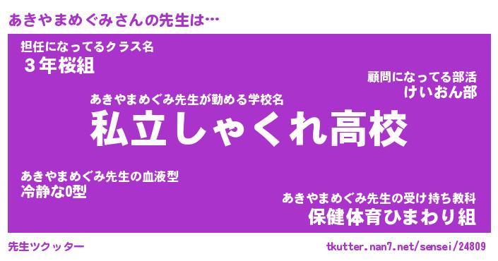 | 伝説のあだ名 | 『伝説のスナイパーあきやまめぐみ』 |