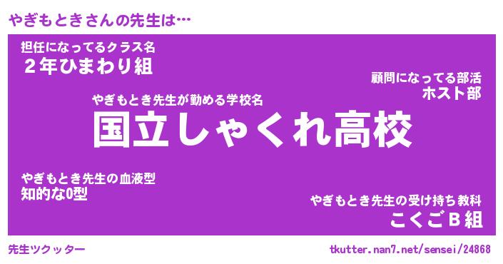 | ヘコむあだ名 | 『やぎっふぃ~』『なまこ酢』 |