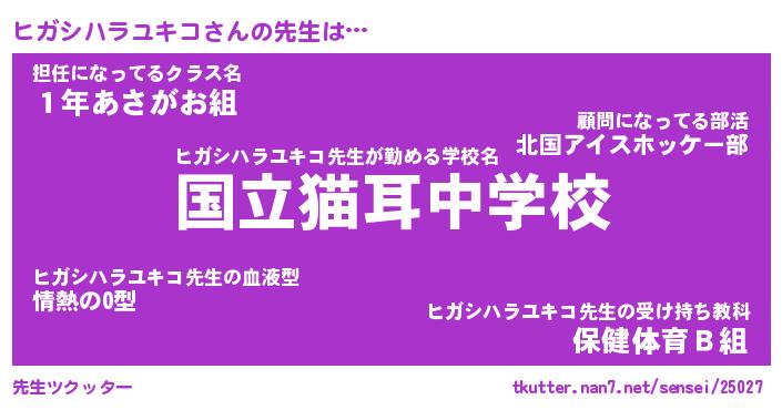 | 意味不明あだ名 | 『ペロリンヒガシハラユキコ』 |