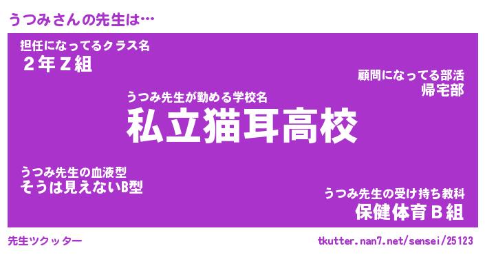 | ヒーロー風カッコイイあだ名 | 『スーパーウツミ』『ウルトラうつみマン』 |