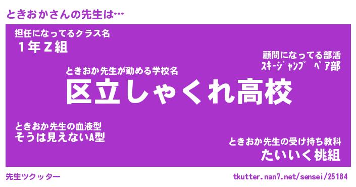 | 意味不明あだ名 | 『ペロリンときおか』『永久保存ときおか』 |