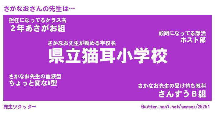 | 意味不明あだ名 | 『ペロリンさかなお』『永久保存さかなお』 |