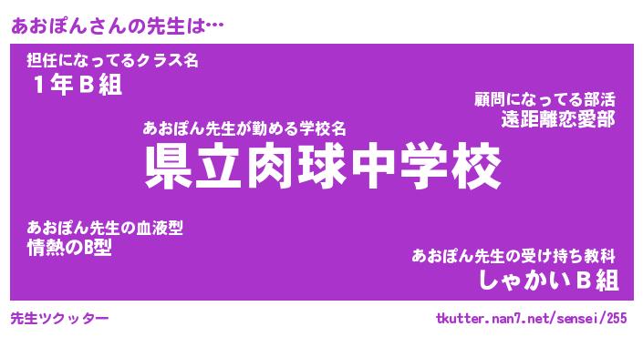 | ヘコむあだ名 | 『あおふぇ~』『牛乳』『あお太郎』 |