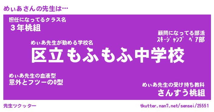 | ヘコむあだ名 | 『めぃにゅー』『酢こんぶ』 |