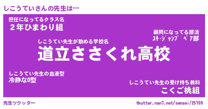 | ヒーロー風カッコイイあだ名 | 『スーパーシコウテイ』『黄金騎士シコ』 |