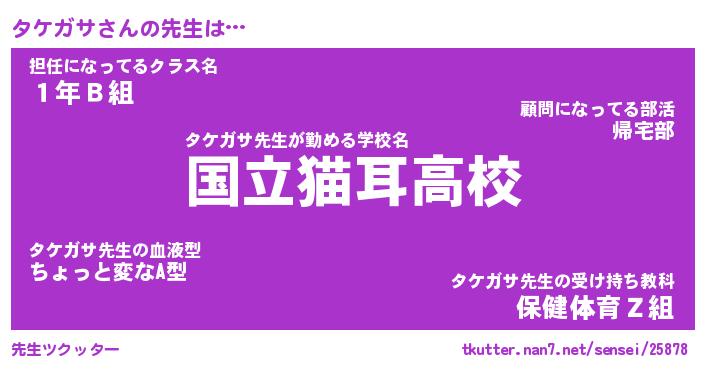 | ファンタジー風あだ名 | 『タケフェル』『エターナルタケガサー』 |