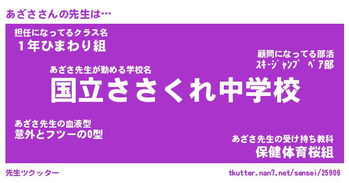 | ヒーロー風カッコイイあだ名 | 『スーパーアザサ』『ウルトラあざさマン』 |