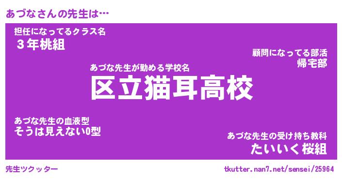 | 意味不明あだ名 | 『ペロリンあづな』『あづなフォーエバー』 |