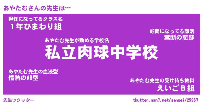| 意味不明あだ名 | 『ペロリンあやたむ』『永久保存あやたむ』 |