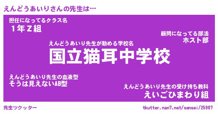 | ヘコむあだ名 | 『えんにー』『つくし』『えんっ子』 |