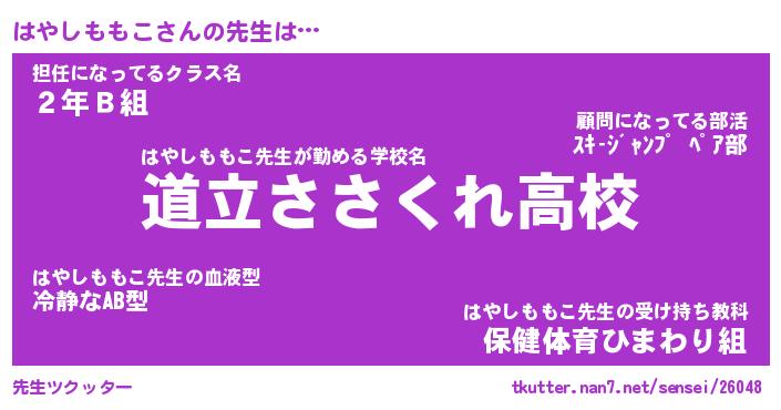 | 伝説のあだ名 | 『不死鳥のスナイパーはやしももこ』 |