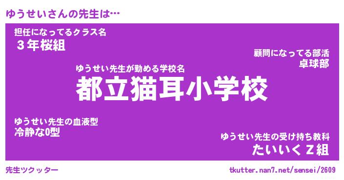 | ヒーロー風カッコイイあだ名 | 『スーパーユウセイ』『天弓騎士ユウ』 |