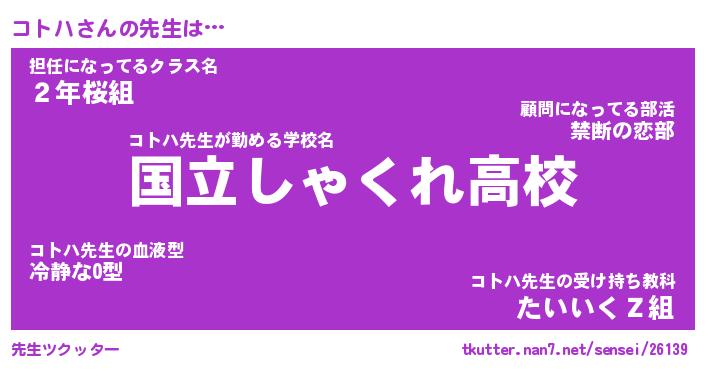 | ヒーロー風カッコイイあだ名 | 『スーパーコトハ』『ウルトラコトハマン』 |